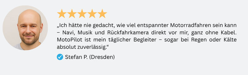 Mit dem MotoPilot bekommst du ein smartes Fahrerlebnis, das dir Sicherheit, Übersicht und Komfort auf jedem Kilometer bietet – ganz ohne Ablenkung.